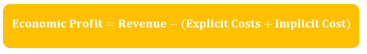 Economic profits of a business are very similar to the accounting profits of the business because these profits are calculated by deducting the explicit costs of the business from its revenues. However, alongside the explicit costs of the business, when calculating the economic profits of a business, its implicit costs are also deducted from its revenues. The economic profit is dictated by economic principles rather than accounting principles. In accordance with this definition, the formula to calculate the economic profit of a business can be written as: